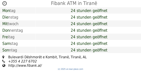 | Dienstag | 24 stunden geöffnet | |||||